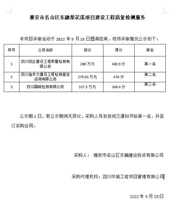雅安市名山區天蒙路片區鄉村振興產業融合發展示范帶建設項目(一標段)設計施工總承包+運營標段勞務+機械采購項目招標結果公告...