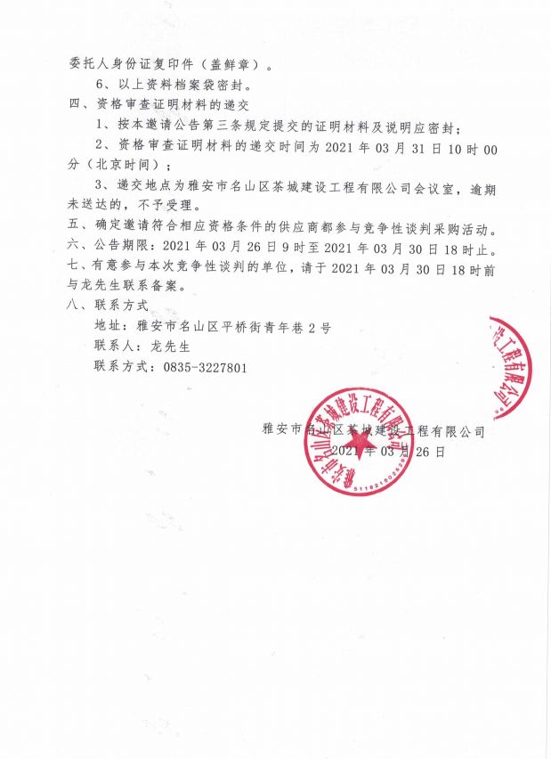 雅安市名山區(qū)皇茶大道安置房項(xiàng)目 護(hù)窗圍墻欄桿競(jìng)爭(zhēng)性談判邀請(qǐng)公告